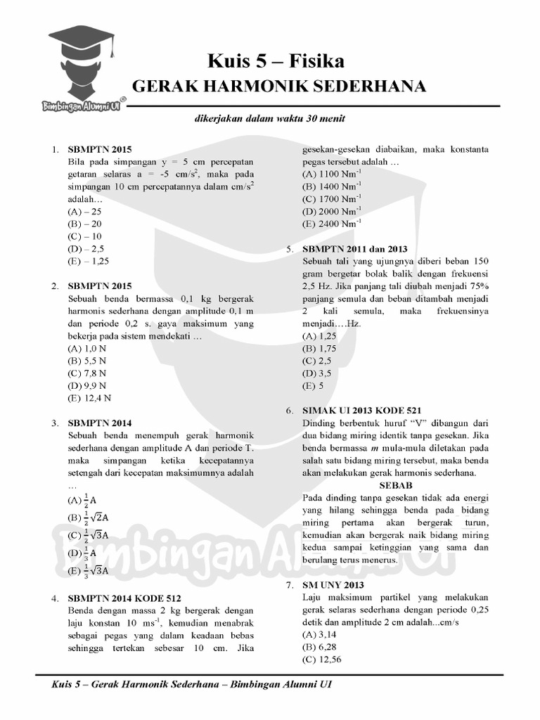 / Soal Sbmptn Gerak Harmonik Sederhana : Sebuah Partikel Melakukan Gerak Harmonik Sederhana / Salah satu jenis gerakan periodik ialah gerakan harmonik sederhana.