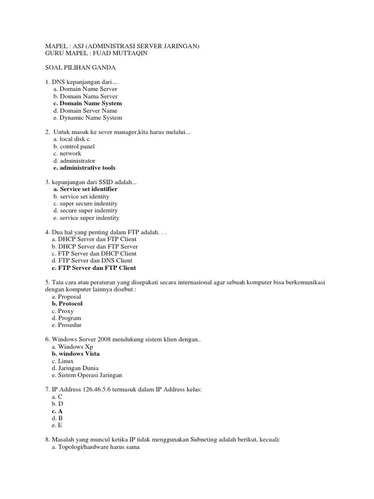 Kumpulan soal dan jawaban administrasi sistem jaringan asj salam literasi. Contoh file soal uas ekonomi kelas xi semester 2 dan kunci jawaban berikut ini adalah kumpulan dari berbagi sumber tentang soal dan kunci jawaban basis data rpl smk kelas 12 semester 1 yang bisa gunakan untuk wallpaper dan diunduh secara gratis dengan menekan tombol download biru dibawah ini. Pusat koneksi untuk trafic jaringan komputer (host) berupa. Jelaskan pengertian shared hosting jawab: soal uts administrasi system jaringan kelas.